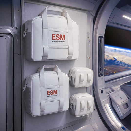 国際宇宙ステーション ( ISS ) はモジュールの集合体で、宇宙飛行士の生命維持装置( LSS )には命を守る必需品が収められています。ESMは、ISSのようにモジュールを連結させることで1つのバックパックに仕上げ、LSSのように毎日の生活で不可欠なものを用途ごとにモジュールへ収納する、というアイディアから生まれました。