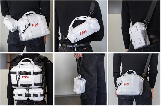 ESM本体から切り離したモジュールは、3種類の付属ベルト(ウエストベルト、ショルダーベルト、ポーチストラップ)を用途に応じて使い分けることで、多様なスタイルで持ち運ぶことが可能です。