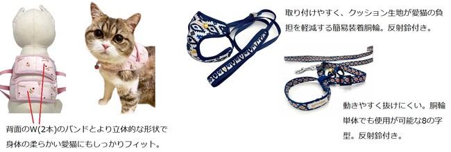 首輪による毛切れやデリケートな皮膚・被毛への影響が心配、愛猫との外出頻度が増えた、防災について考えたい、といったオーナー様のお声に寄り添い開発した愛猫用「首輪」「アクセサリー首輪」「胴輪付引ひも」を発売します。