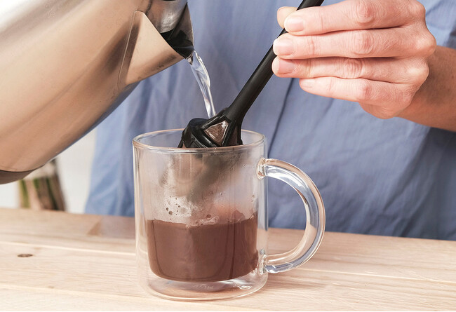 メッシュバスケットへ挽いた豆を入れ、カップへ入れて上からお湯を注ぎ、くるくる回してかき混ぜたら2~3分待つだけ。慌ただしい朝でもお気に入りのコーヒーを楽しむ事ができます。