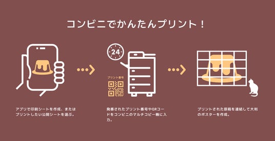 スマートフォンに保存したお気に入り画像から大判ポスターをつくることができる『コンビニつなげて大判プリント メガプリン』がリリース。『メガプリン』アプリでデータを作成し、コンビニのマルチコピー機でプリント、A3用紙×複数枚に拡大・分割プリントされた用紙をつなぎ合わせることで、一枚の大きなポスターをつくることができます。