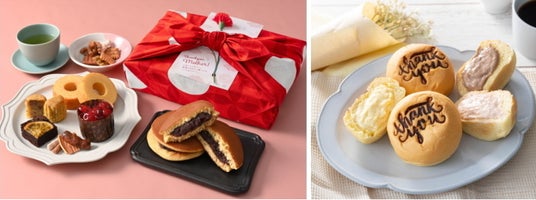 ■七宝風呂敷包みスイーツギフト ¥3,672-(税込) ■八天堂 Thank youくりーむパン ¥3,996-(税込)