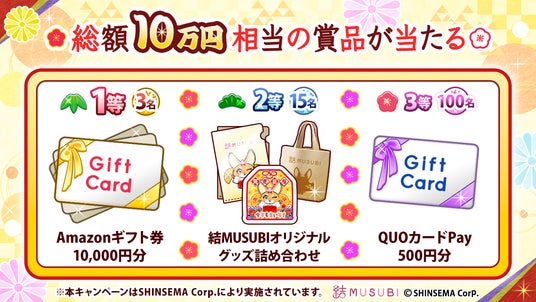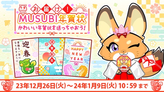 SHINSEMA株式会社(東京都新宿区高田馬場、代表:申尚澈)は、お守りと一緒に贈る新しい年賀状「MUSUBI年賀状」のリリースを開始いたしました。これにより12/26(火)~1/9(火)の期間中、結・MUSUBIアプリからデジタルお守り付き年賀状を贈ることができます。結・MUSUBIから年賀状を贈って素敵な2024年にしましょう!iOS:https://apps.apple.com/jp/app/id6450392349