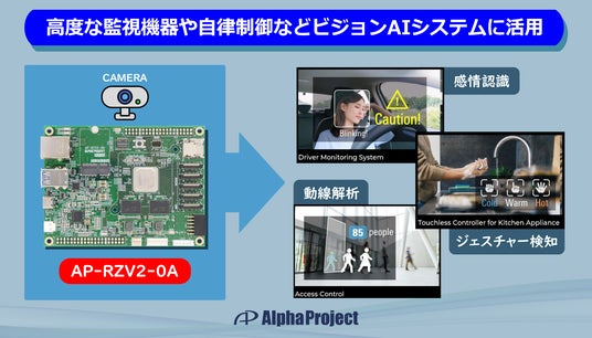 株式会社アルファプロジェクト(本社:静岡県浜松市 取締役社長 岡本典久)は、 ルネサス エレクトロニクス株式会社(以下、ルネサス)製の最新MPU「RZ/V2H」を搭載した組込みボードコンピュータ「AP-RZV2-0A」を4月8日より発売いたします。