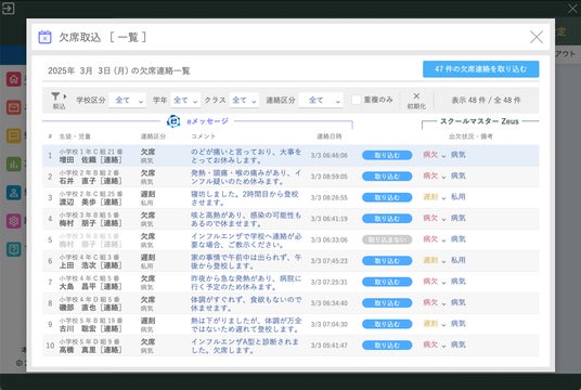 【欠席情報取り込み画面】