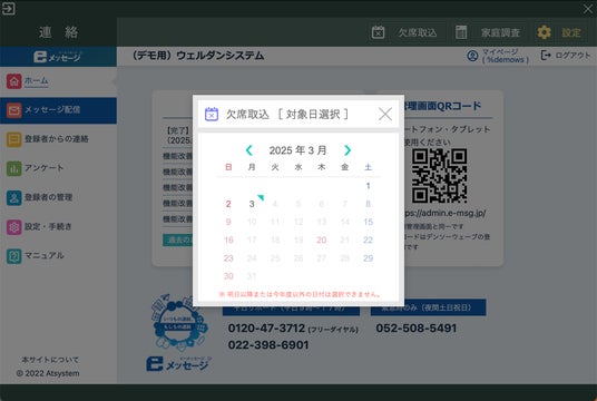 【欠席情報連携画面】