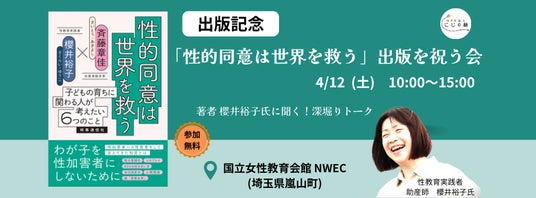性教育の普及啓発を行うNPO法人にじの絲(事務所:埼玉県ときがわ町 代表理事:吉野愛)は、書籍「性的同意は世界を救う」出版を祝う会(参加費無料)を2025年4月12日に開催します。今年1月に出版された「性的同意は世界を救う: 子どもの育ちに関わる人が考えたい6つのこと」著者で性教育実践者の櫻井裕子氏(助産師)をお招きし、深堀りトークや出版裏話などから性的同意についてさらなる理解を深めるイベントです。