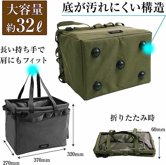 本製品は、横幅37cm・高さ32cm・奥行27cm・容量約32リットルの大容量バッグです。
