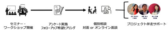 セミナー開催後も、参加者のご希望に応じ、プロジェクトを伴走し、起案に向けサポートしてまいります。