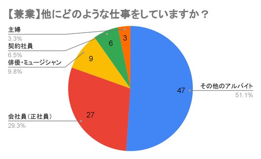 調査結果4.:5割超がアルバイトとの兼業、29.3%が会社員との兼業(N:92)