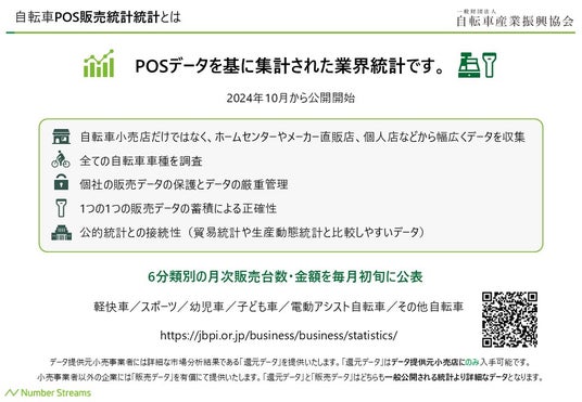 一般財団法人自転車産業振興協会-2024年10月11日にPOSデータ等の販売実績データを基に集計された自転車業界初の統計である「POS販売統計」を公表-