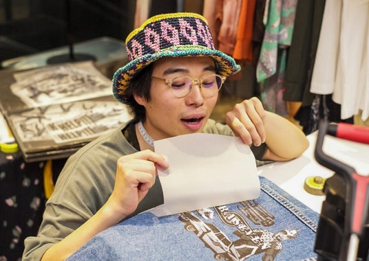 持ち込んだ服にその場でプリント(2024年渋谷イベント)