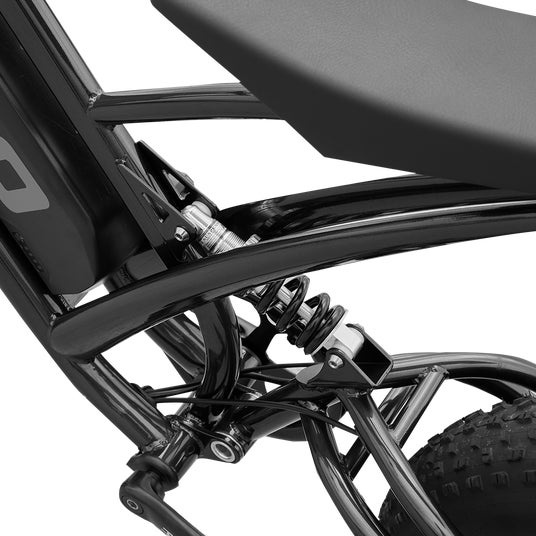 フロントフォークのサスペンションと、リアのコイルサスペンション、ダブルのサスペンションで、腰やお尻への衝撃も軽減します。