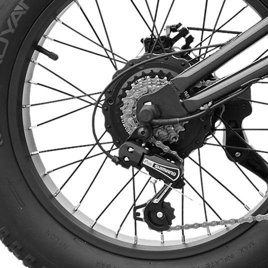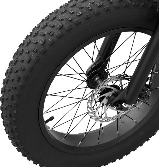 インパクトのあるファットタイヤは、20インチ4.0サイズ。幅の広いタイヤを装備することで走行の安定性を向上させます。制動性の高いディスクブレーキでしっかり停車します。