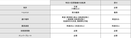 ※特定小型原動機付自転車とは、2022年4月に道路交通法改正案により新しくできた軽車両(自転車)と原付の間の区分。
