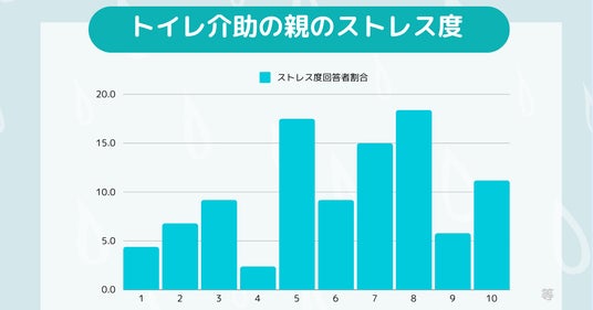 「現在のお子様のトイレのサポートに関するストレスは10段階中どのくらいですか?」と質問したところ、親御様のストレス平均スコアは6.2であることがわかりました。
