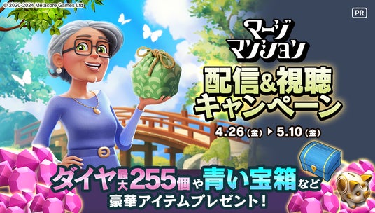 Metacore Games Ltd(本社:フィンランド、CEO:Mika Tammenkoski、以下Metacore)が開発・運営するモバイル向けマージパズルゲーム『マージマンション』は、2024年4月27日(土)よりゴールデンウィーク限定、豪華プレゼントが獲得できるログインイベントを開催いたします。