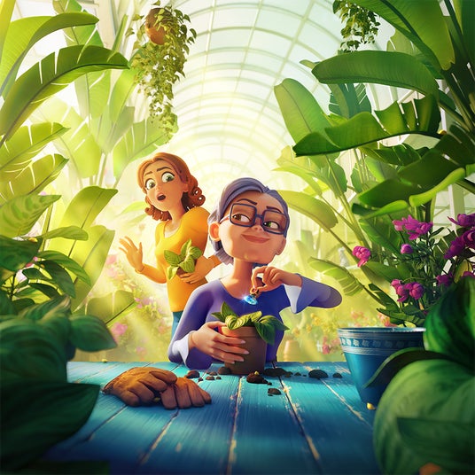 おばあちゃんと孫娘が繰り広げる壮大なパズルゲームとストーリー。