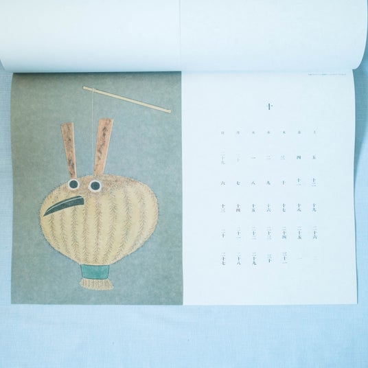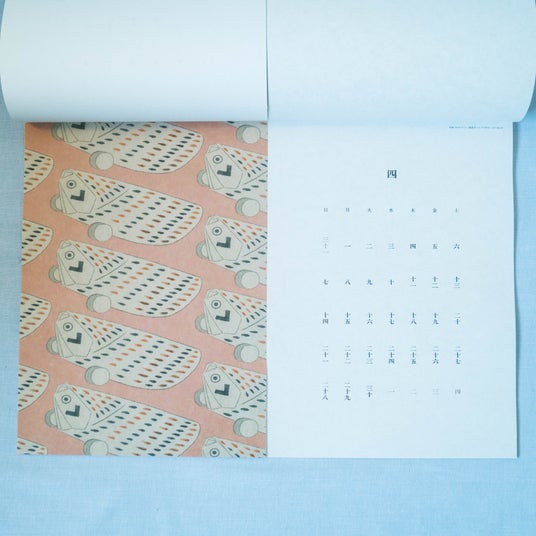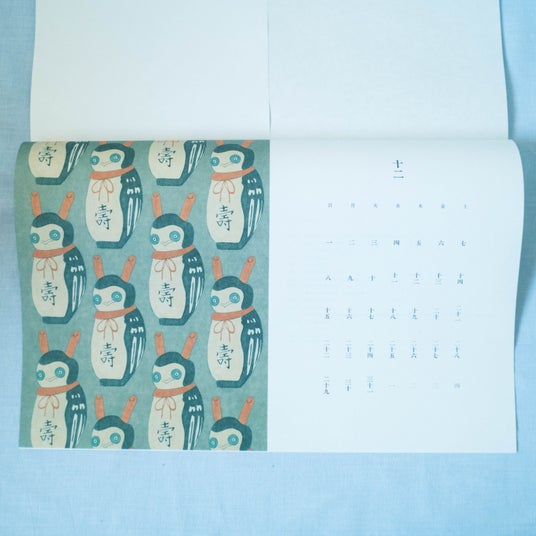 竹紙の質感の良さだけでなく、左右で分かれているデザインも魅力的なカレンダー。めくっていくと互い違いに絵柄が現れ、毎月お部屋の空気を軽やかに変化させてくれます。
