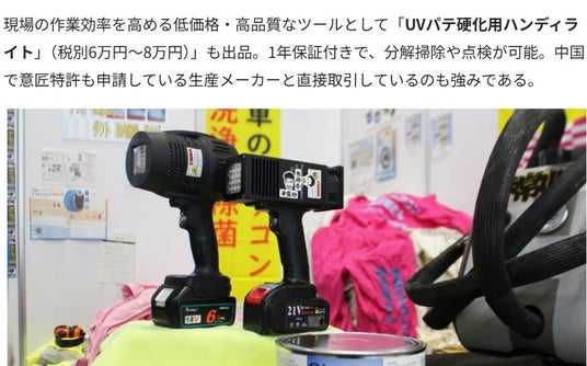 現場の作業効率を高める低価格・高品質なツールとして「UVパテ 硬化用 UV照射機」