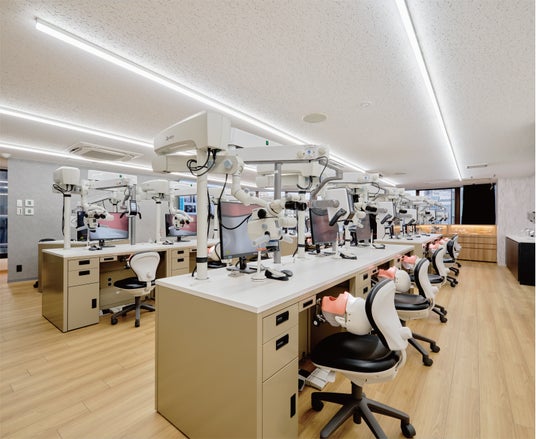 Hands-On Studio(ハンズ オン スタジオ)全ての実習台にマイクロスコープ、デジタルマイクロスコープ、オーラルスキャナを備え、実践的なハンズオンセミナーが可能。反復学習もサポート。
