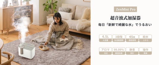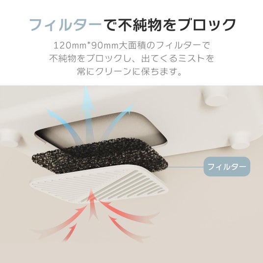 ■■この加湿器は改良に改良を重ね、さらに進化した除菌浄化システム!水循環+抗菌カートリッジ+分解除菌機能のうえ、タンクも銀イオン抗菌加工が施され、タンク内の雑菌繁殖も抑え、より一層清潔なミストを届けてくれます。マイナスイオン放出機能付で、空気中の不純物を浄化してくれるので、清潔で快適なうるおいを楽しめます。新技術を基づいた超音波式で、タンク内の水を約5μmの霧にして噴出し、浸透力が従来より強化されますので、秋冬のスキン、唇の乾燥に大活用!