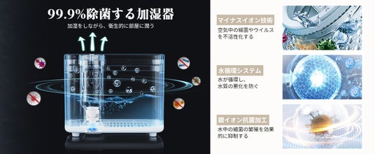 【4重除菌加湿器 &マイナスイオン空気清浄&超微細5μmミスト】