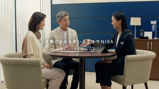 本CMは、前作でみずほの人にNISAについて相談をした娘が、定年退職間近のお父さん役である光石研さんに、NISAの相談に行ってきたことを楽しくお話するシーンからスタートします。娘の話を聞き、悩みながらも相談に向かうことを決めたお父さん。相談する時は少し不安そうにしていましたが、「人生まだまだ長いので、一緒に考えていきましょう」と“みずほの人”が寄り添い、お父さんの表情も明るくなります。