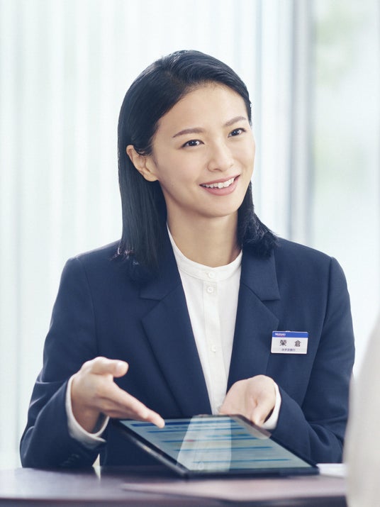 榮倉さん)前回に引き続き、CMキャラクターとしてみずほの人を演じさせていただいています、榮倉奈々です。ライフステージの変化による、お金や将来のことを気軽に相談できる場があるということを、お届けできる内容となっております。ぜひご覧ください。