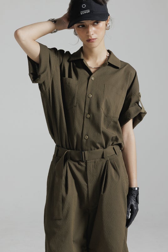 膝上丈のワイドシルエットショートパンツ。ECROF定番商品のショートパンツがシアサッカー素材で登場。同素材のベルトが付属し、背面にはゴルフボール3個分がすっぽり収まる大きめポケットを配置。プレイ中の利便性も抜群です。今シーズン新作の「オープンカラーシャツ」と同素材のため、通気性や吸水速乾性、ストレッチ性に優れており、夏でも涼しく快適に着用できます。セットアップとしても、単品での着用もおすすめです。¥23,100 tax in