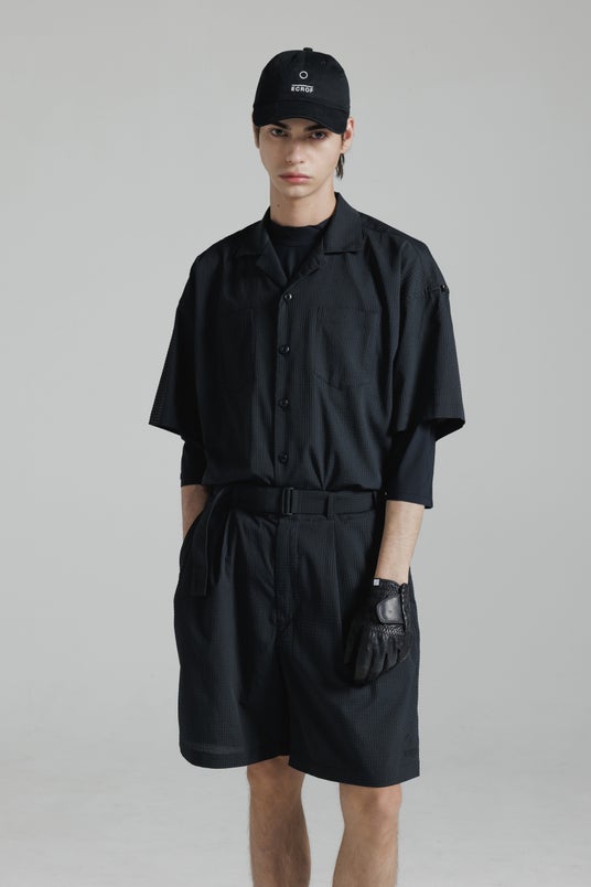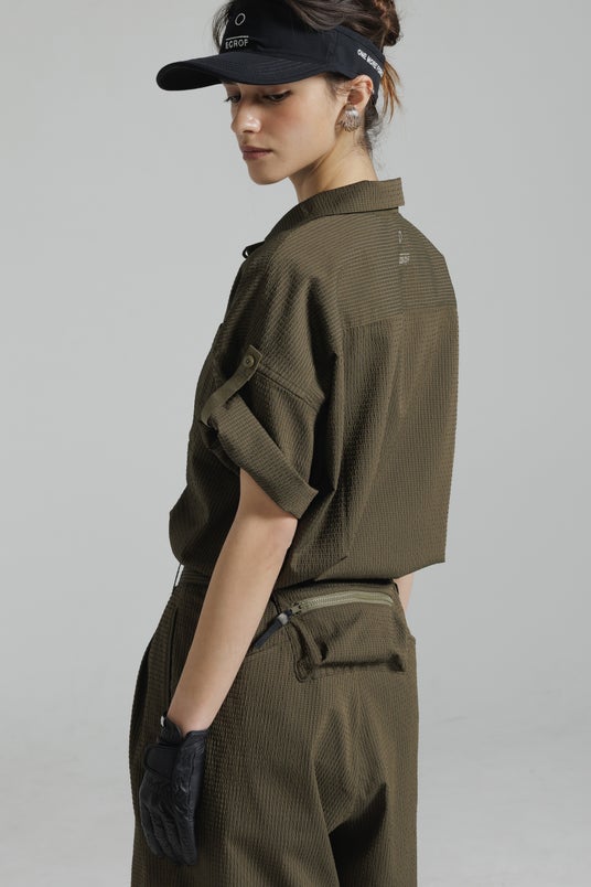 シンプルで洗練された、大人のための開襟半袖シャツ。ゆったりとしたシルエットが特徴で、袖をロールアップすれば、より軽快な印象に。通気性・吸水速乾性に優れた軽量2WAYストレッチ素材を採用。シアサッカー素材の特徴的な凹凸感により、肌と生地との接触面積を減らし、夏のラウンドでも涼しく快適に着用できます。同素材のショートパンツとセットアップで着用すると、オールインワンのようなスタイリッシュな着こなしに。¥25,300 tax in