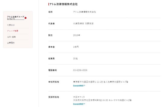 「アトム法律事務所」「アトム法律情報株式会社」からなる「アトム法律グループ」の組織体制を明確化しました
