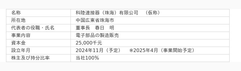 創業から60年以上の実績を積み、日本国内に7拠点、海外子会社として台湾、上海、香港、ドイツ、米国と5拠点を展開しており、この度グローバル展開を加速させるために、6拠点目となる中国広東省珠海市に海外子会社(以下、「新会社」といいます。)として、新たに生産拠点を設立することを決議いたしました。
