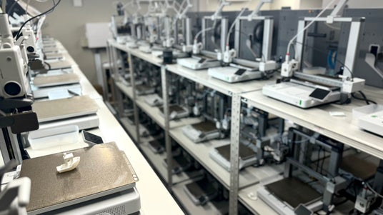 複数のプリンターを活用し、数百個から数千個単位の製造にも対応します。異なる条件の試作品を同時に出力し、最適な形を見つけていきます。