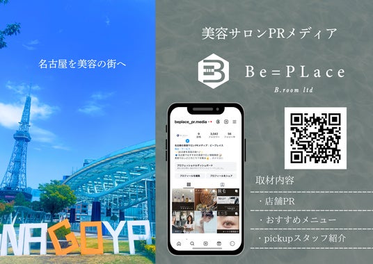 株式会社B.room(名古屋市中区金山、代表取締役:高瀬 大志、田口 潤哉)は、名古屋の美容店舗の良さを多くの人に知ってもらうために、名古屋の美容サロンPRメディアサービス『Be=PLace』を立ち上げました。