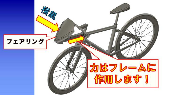 自転車を秒速3mの向風の中、時速20kmで走行した場合、約90%が空気抵抗(*1)によるパワーロスため、自転車愛好家向けに多くの自転車用エアロパーツが市販されています。 CdEaK-JPNでは、従来と異なるアプローチでこの問題を軽減するため、自転車用フェアリングに着目し開発を進めていました。