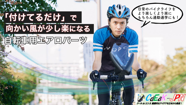 「クールでエコ&健康的なアイデアを日本から発信」を目的として開業したCdEaK-JPN(シーデック・ジェイピーエヌ) (神奈川県横浜市)は、開発した自転車用空気抵抗軽減器具「フェアリング」を、クラウドファンディングサイト「マクアケ」にて期間限定(2023年11月6日(月)から2024年1月8日(月))で先行販売を開始しました。