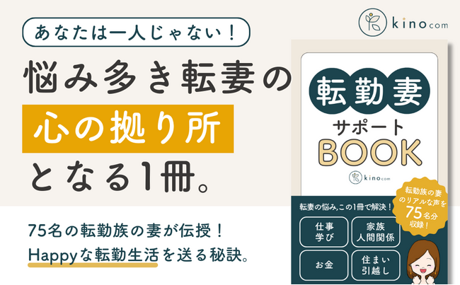 転勤族の妻のためのキャリアコミュニティ「kinocom(キノコム)」(代表:山口由香子、以下「kinocom」)は、転勤族の妻のキャリア・人間関係・お金・住まいなど、あらゆる悩みを解決する電子書籍『転勤妻サポートBOOK』を2024年2月28日(水)に発売いたします。予約販売は本日1月17日(水)より開始しております。