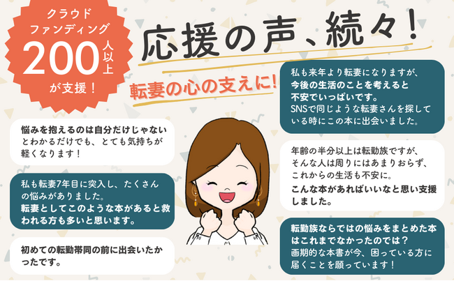 この本には、そんなこれまでの想いや経験をすべて詰め込みました。転勤族の妻は大変かもしれないけど、不幸ではない。転勤族である今の自分の人生を楽しめるようになれたら、もう怖いものはありません。この本を読んだ一人でも多くの転勤族の妻の方が、転勤による孤独や不安を乗り越えて今よりさらに充実したHappyな毎日を過ごすことができたら嬉しいです。