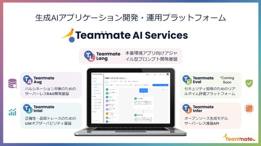「Teammate AI Services」は生成AIを自社製品や業務プロセスに迅速・安全に組み込み、継続的な精度向上を可能にするエンジニア向けツールです。