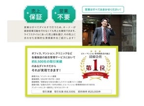 フランチャイズオーナーによる営業活動は原則不要。清掃ビジネスの最難関である顧客獲得は当社が全て担うため、オーナーは清掃や既存顧客のみに専念することができます。