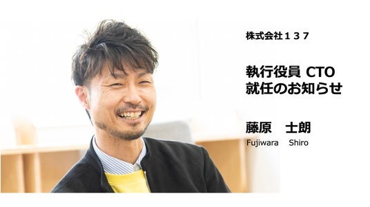 株式会社137は、執行役員CTO 藤原士朗氏を迎えることで、IT技術と事業構想(プロジェクトデザイン)を融合・深化させ、EdTech分野から誰一人取り残さない価値創発の更なる展開とより良い未来づくりに向けた事業促進の可能性を切り拓き、さらなる事業成長と共に、学びの未来創造を目指し邁進してまいります。