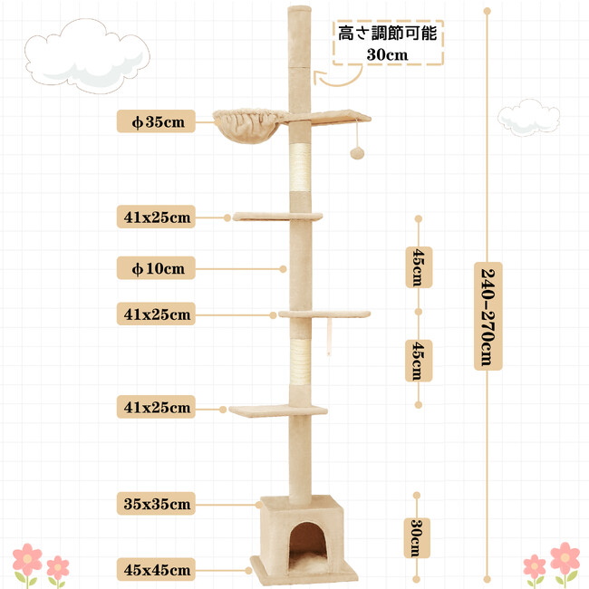 【2024.01.22~2024.01.28】 期間限定 新品お買い得50%OFF。270mmまで調整できるキャットタワーは僅か5649円