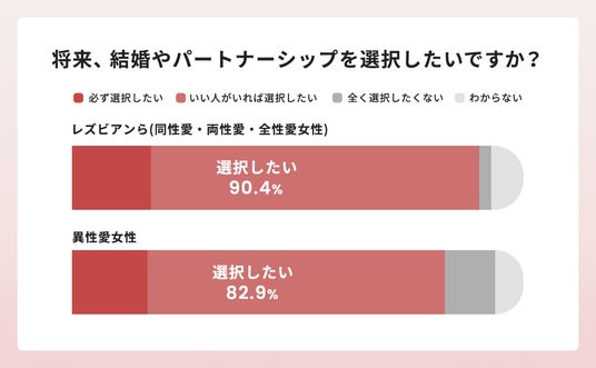 レズビアン、バイセクシュアル、パンセクシュアルの女性も、異性愛女性と同じように公的に認証される安定したパートナーシップを多く望んでおり、法改正が待たれると同時に、前述の「出会いへの課題感」を解消していくことの重要性がうかがわれます。