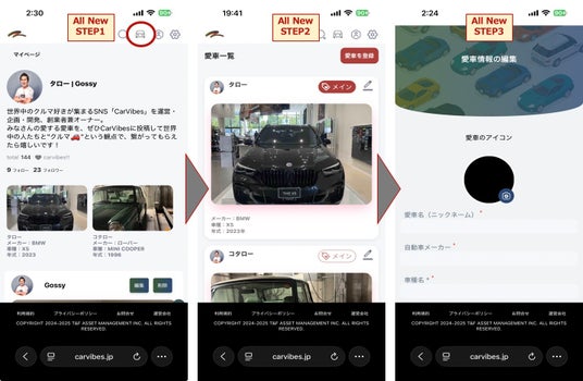 この度T&Fアセットマネジメント株式会社 (神奈川県横浜市 代表取締役兼CEO:大越隆行)は、世界中のすべてのクルマ好きに向けたSNS「CarVibes(R)(カーバイヴス)」が、「自分の投稿を他SNSへ自動転載できる機能」と愛車登録台数を最大10台まで登録できる「愛車登録機能」の2機能をリリースした事をお知らせ致します。