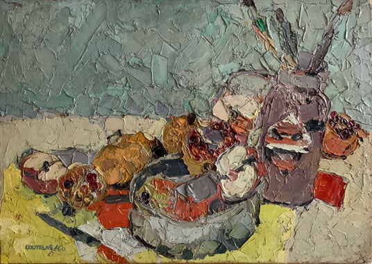 「Nature morte aux pinceaux et aux fruits」46 x 66