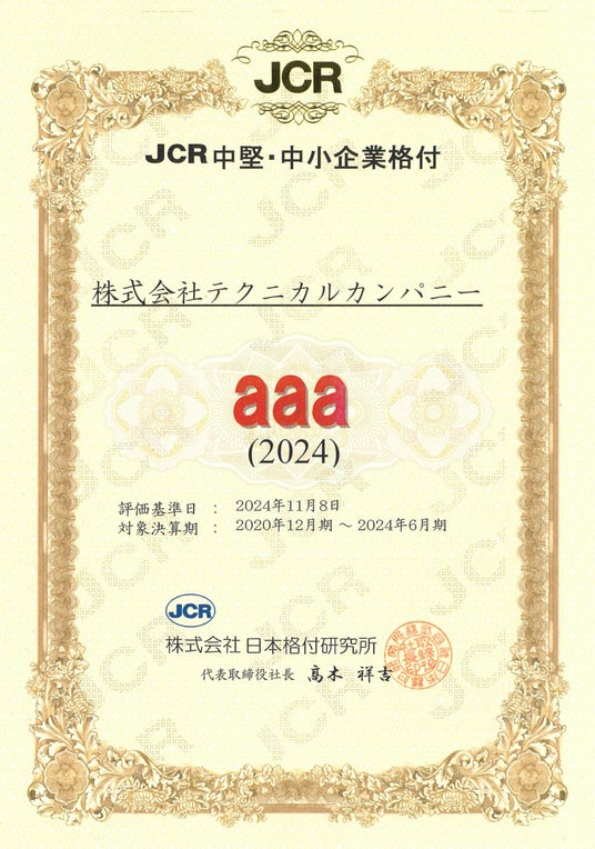 JCR中堅・中小企業格付 株式会社テクニカルカンパニー aaa 2024年