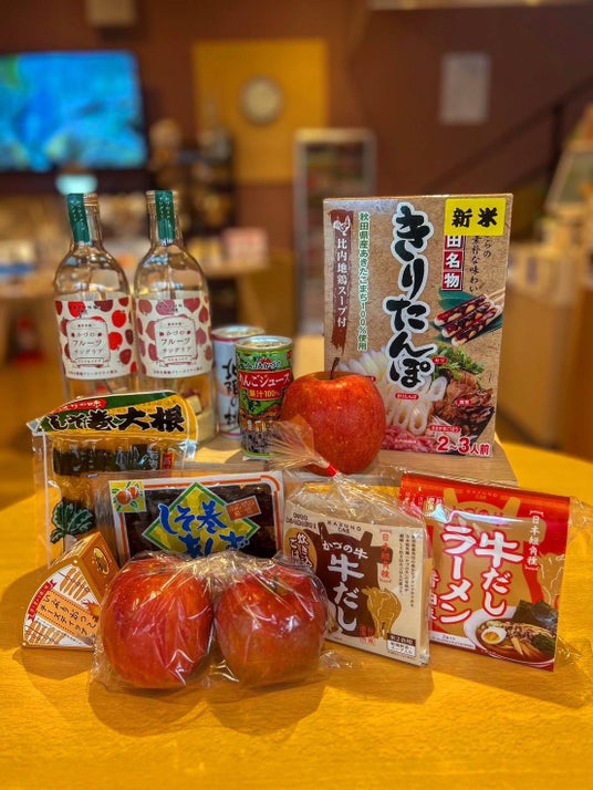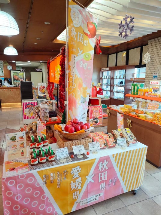 秋田県の新鮮なリンゴやおいしいお米、名産品「いぶりがっこ」に「きりたんぽ」が、愛媛県伊予市とその周辺市町にある道の駅などの交流拠点で購入できます!