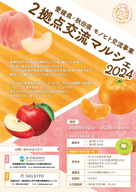 一般社団法人伊予市観光物産協会ソレイヨ(代表理事:武智邦典)は、株式会社かづの観光物産公社(代表:畠山佑介)と連携し、地域のヒト・モノを相互に交流する事業を開催しています。