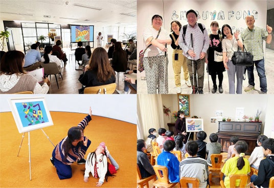 企業研修、目の見えない人など多様な特性の方々との連携、親子向け、放課後クラブでの対話型アート鑑賞の実施の様子